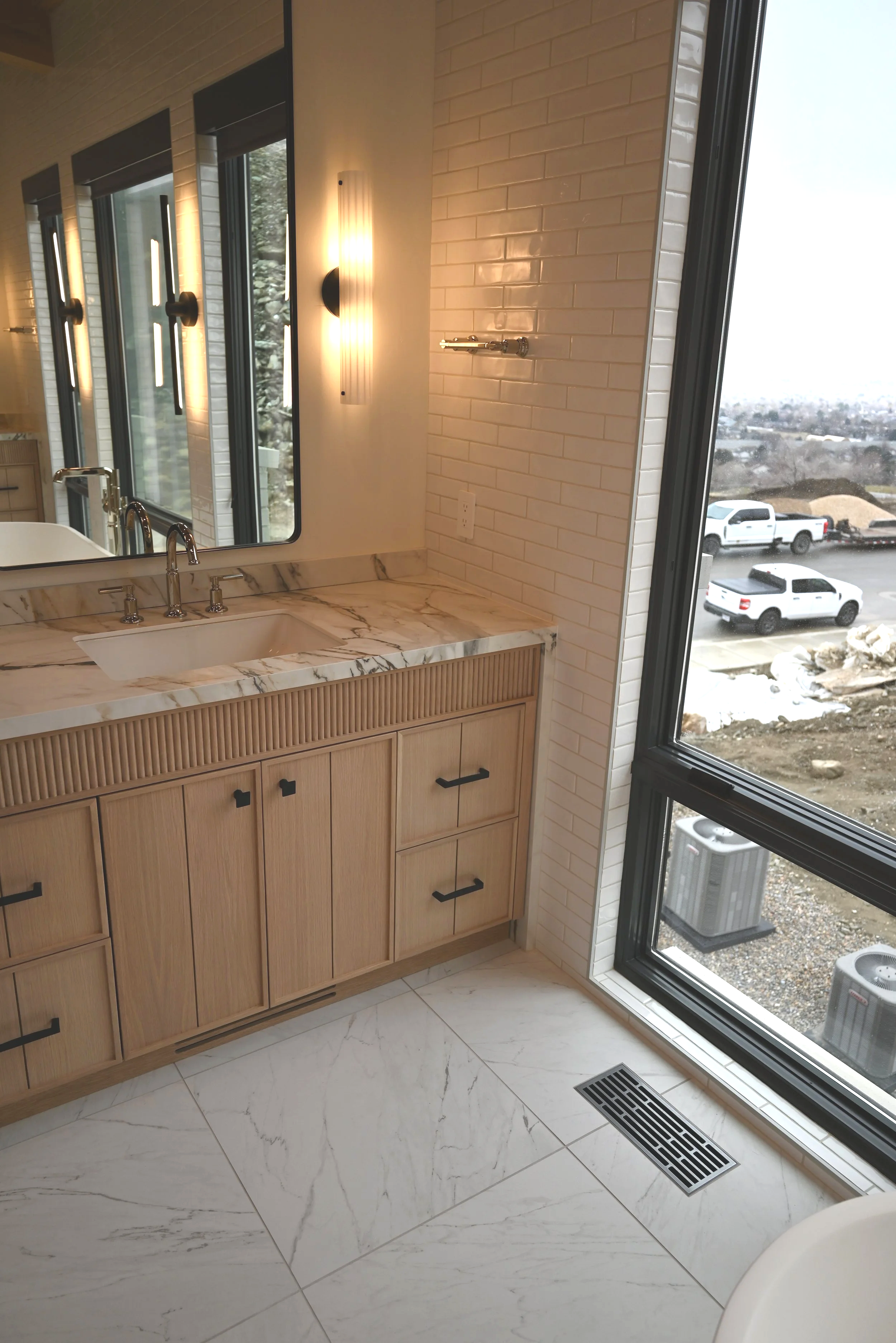 Unlike traditional tile floor registers, our flush frame system protects tile edges from cracking and chipping while ensuring long-term structural stability. The result is a modern, built-in appearance that complements high-end bathrooms, kitchens, entryways, and commercial interiors.